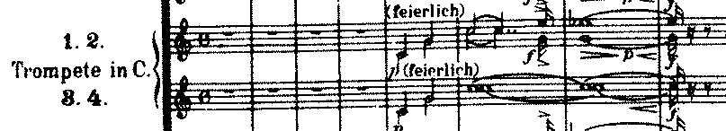 Von der großen Sehnsucht (Of the Great Longing) is the next section of music, and it depicts Zarathustra’s great yearning to elevate and uplift humanity to his enlightened state.  It is music which is layered heavily with the “Longing” motive.  This part of the tone poem elides right into the next, Von den Freuden und Leidenschaften (Of Joys and Passions), which is a frenetic depiction of Zarathustra’s Passions.  Naturally enough, Strauss uses the “Passion” motive liberally in this section, and part way through we hear another important motive.  Three trombones blare out in unison a motive sometimes labeled the “Disgust” motive, but one which Robert Greenberg calls the “Full to Bursting” theme.  This is a theme that is as full of chromaticism and dissonance as the “Nature” theme is full of consonance.